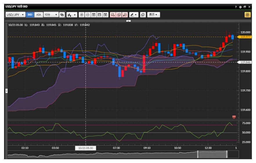 - インジケーターや描画ツールをチャート上に表示させて分析をおこなう