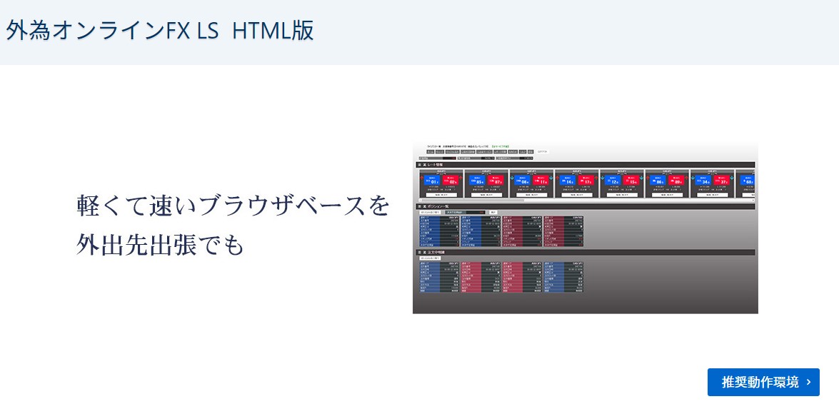 「外為オンライン」ではブラウザ利用可能な取引ツールを用意しています。