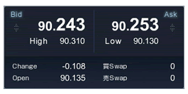 上記の画像では「90.243円-90.253円」の差額1銭がスプレッドです。