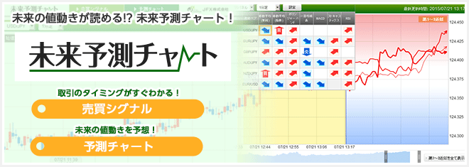 JFXの未来予測チャートは、過去の膨大な為替の動きから瞬時に未来の為替の値動きを予想します。
