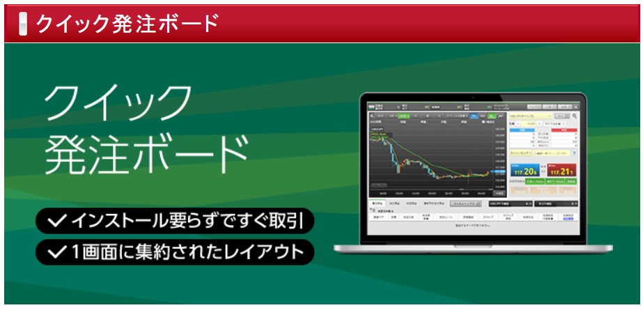 こちらの「クイック発注ボード」では簡単なチャート分析と新規注文・決済がおこなえます。