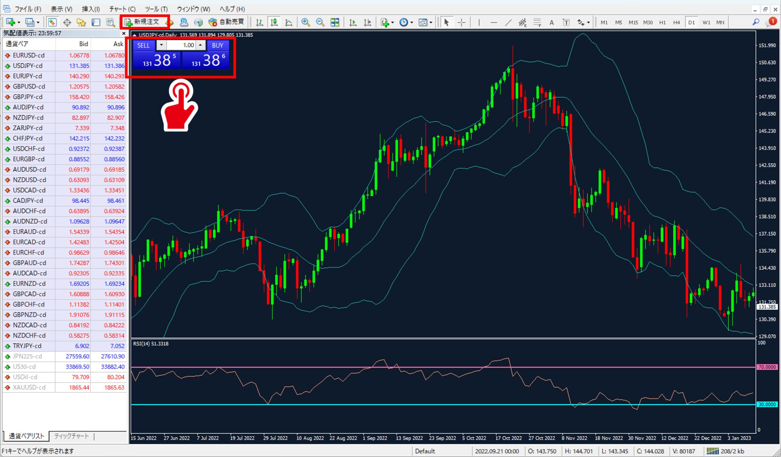 - 買い/売り:買い注文/売り注文を選んで注文を実行