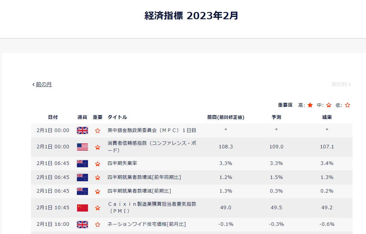 また、FX会社のサイトには経済指標が発表されるタイミングや重要度をチェックできる「経済指標カレンダー」があります。