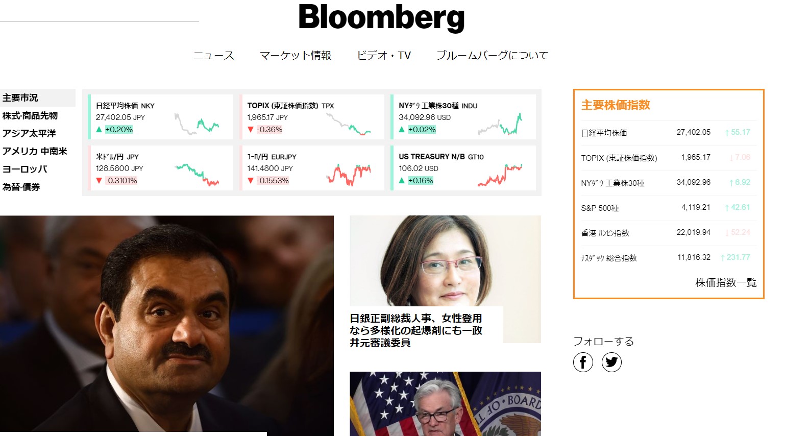 先ほども少し登場しましたが、やはりFX関連のニュースを集めるのであればブルームバーグは外せません。