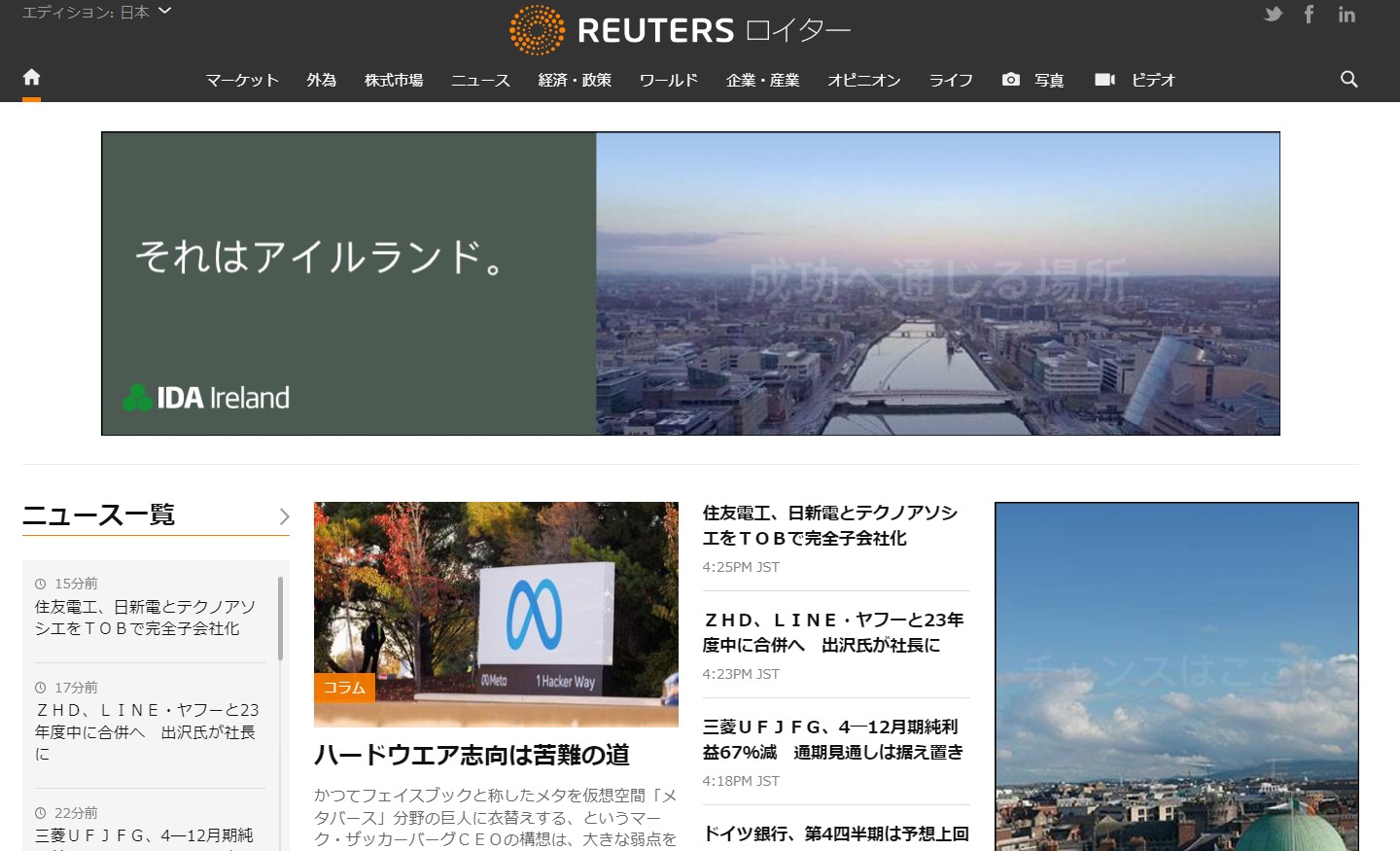ロイターはロンドンに本社を置く世界有数の通信社です。