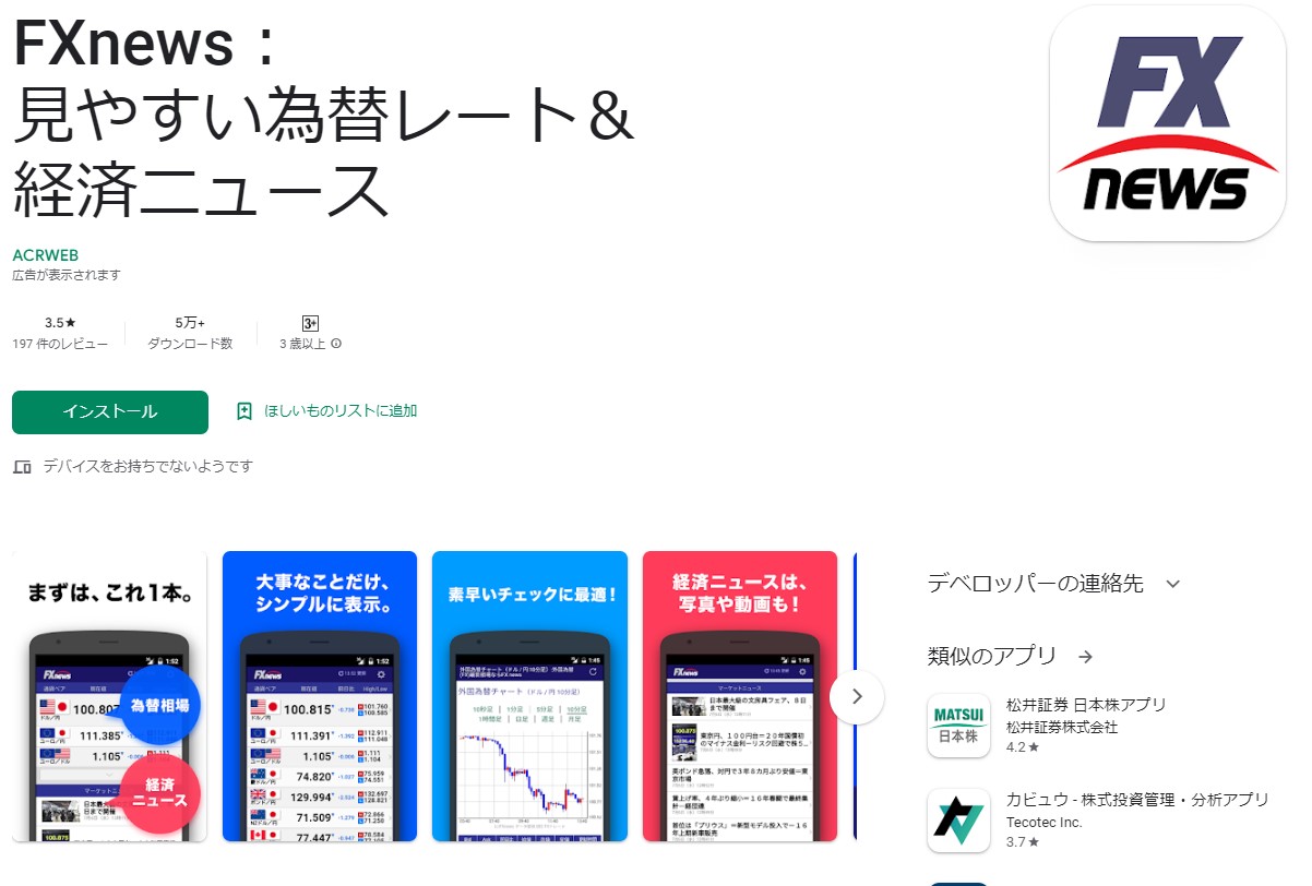 こちらの「FXnews見やすい為替レート&経済ニュース(Android)」は非常にシンプルなインターフェースをしているところが特徴的なアプリです。