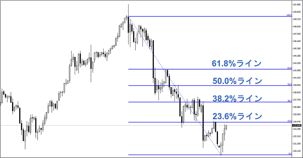 - 一般的に重要視されるのは「23.6%」「38.2%」「61.8%」のライン