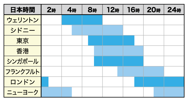 東京(日本)やロンドン(英国)、そしてニューヨーク(米国)といった経済主要国の為替市場が開くタイミングというのは1日の中でも売買が活発化するタイミングです。
