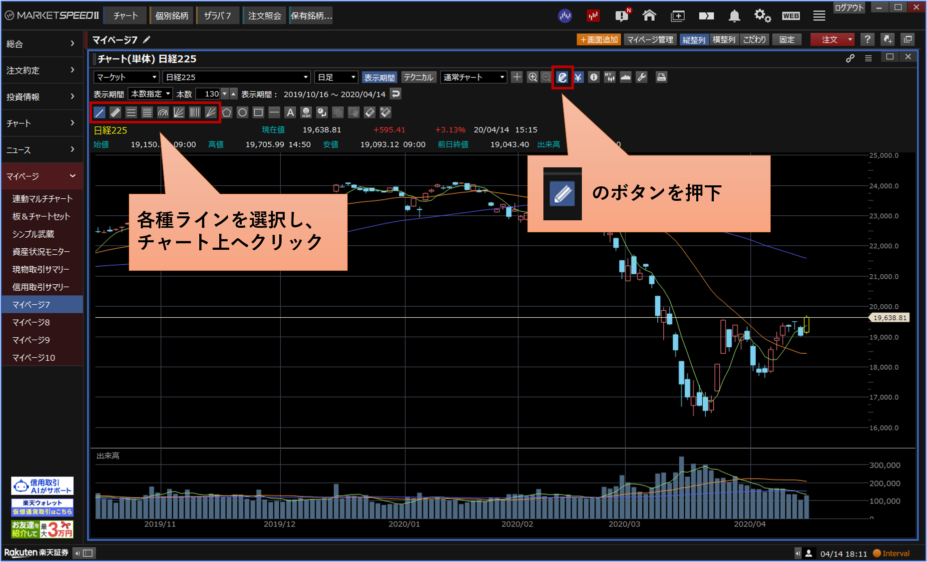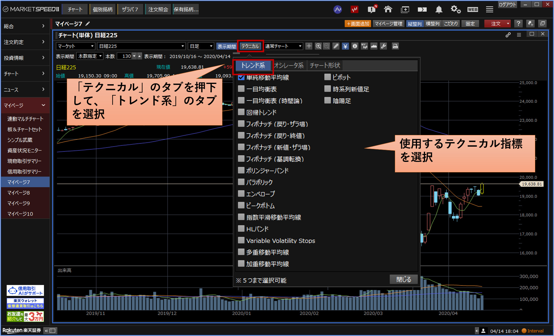 テクニカル分析の表示方法[楽天証券]